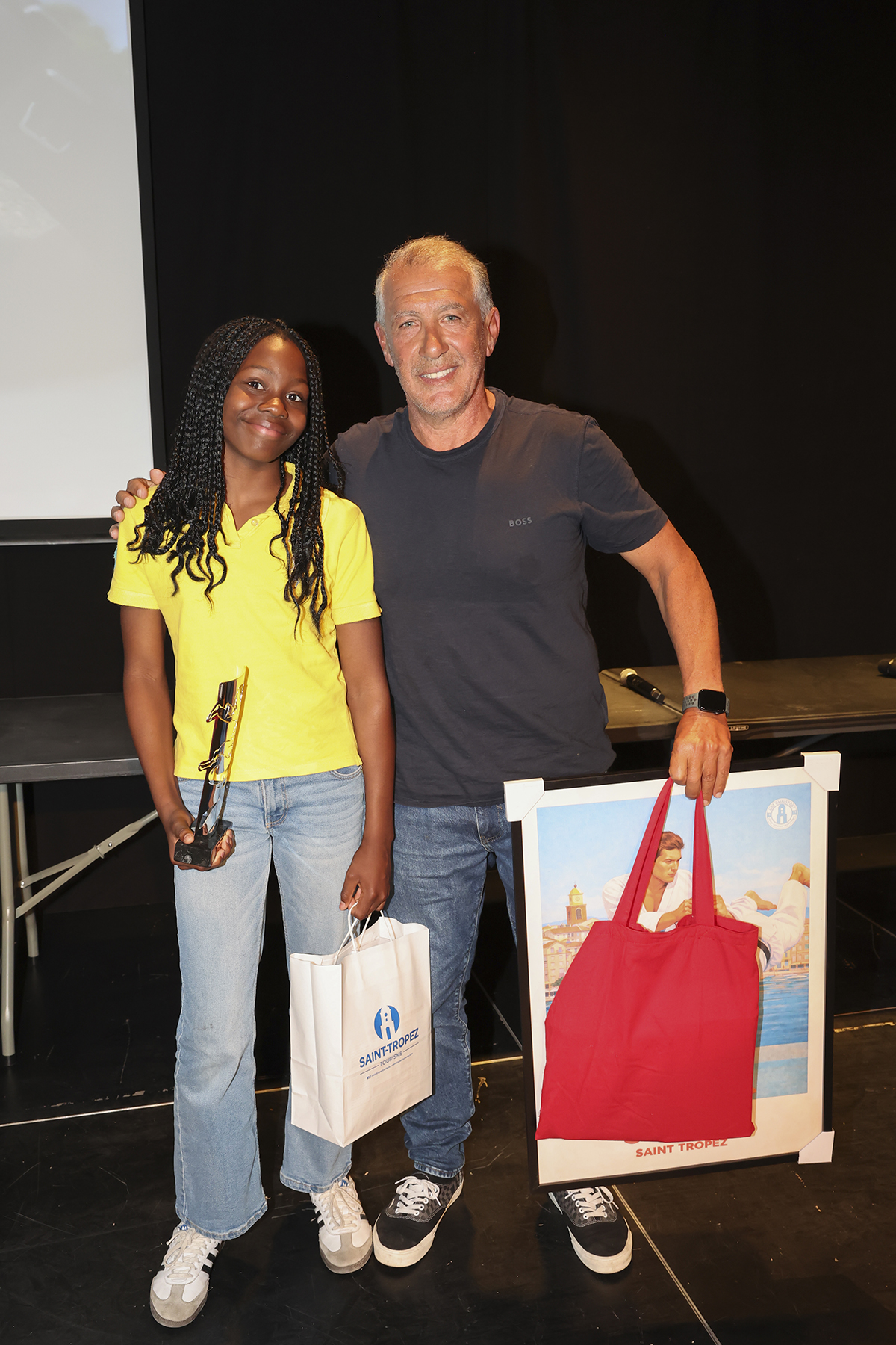 - Edouard Planel, récompensé pour ses bons résultats en 2025, par Jean-Philippe Morin UST Triathlon, avec Sylvie Siri, maire de Saint-Tropez